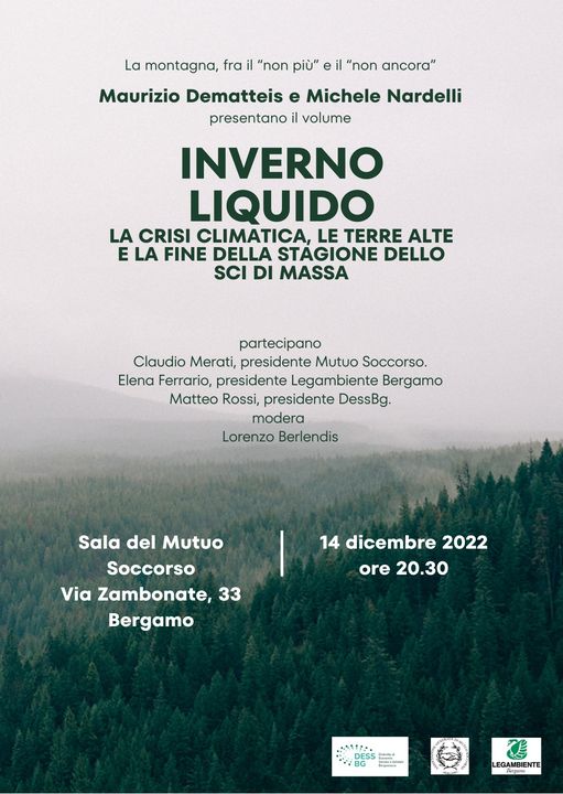 Si inizia giovedì 30 marzo alle ore 20.30 in Sala Frasnelli (sopra la biblioteca) con Michele Nardelli, che presenterà il suo ultimo libro “Inverno liquido. La crisi climatica, le terre alte e la fine della stagione dello sci di massa”, Edizioni DeriveApprodi (coautore Maurizio Dematteis).